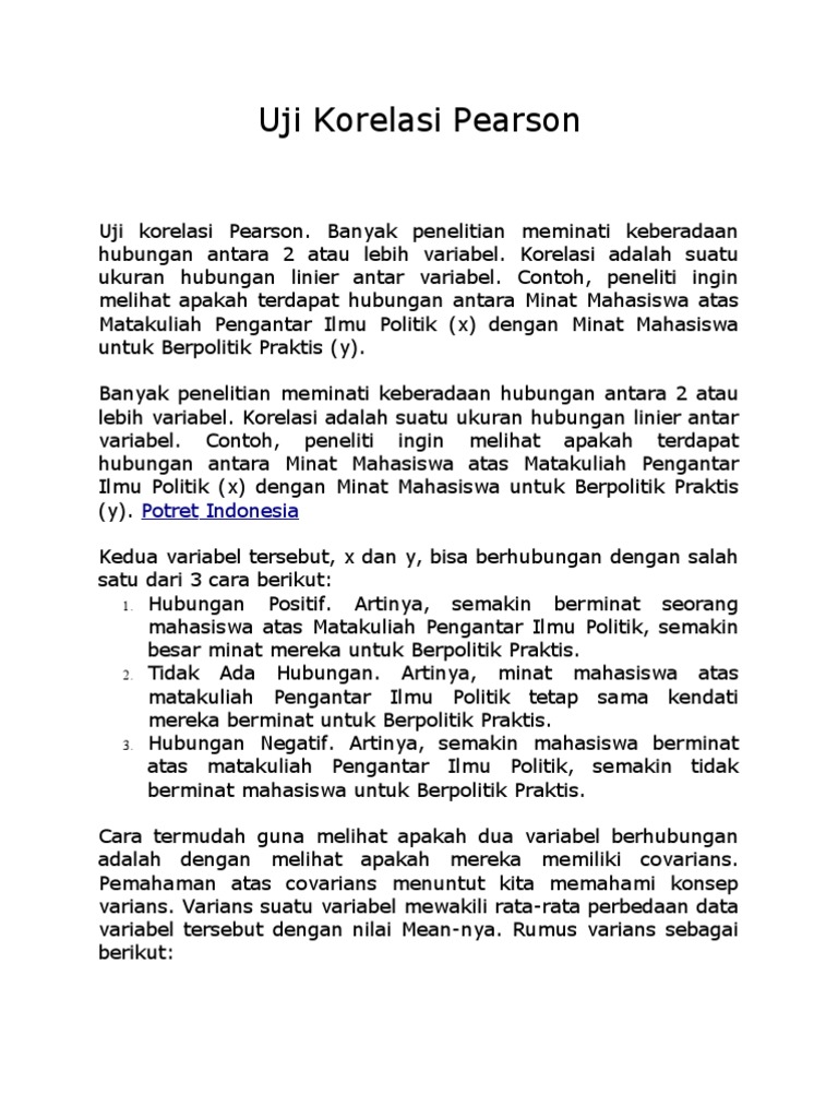 Dalam korelasi sempurna tidak diperlukan lagi pengujian hipotesis, karena kedua variabel mempunyai hubungan linear yang sempurna. Korelasi adalah teknik statistik yang digunakan untuk menguji ada atau tidaknya hubungan serta arah hubungan dari dua variabel atau lebih. Korelasi biasanya dilambangkan dengan r dengan rentang nilai korelasi berkisar antara. Koperasi adalah badan usaha atau badan hukum yang anggotanya saling bekerja sama dalam menurut bapak koperasi indonesia mohammad hatta, koperasi adalah usaha.