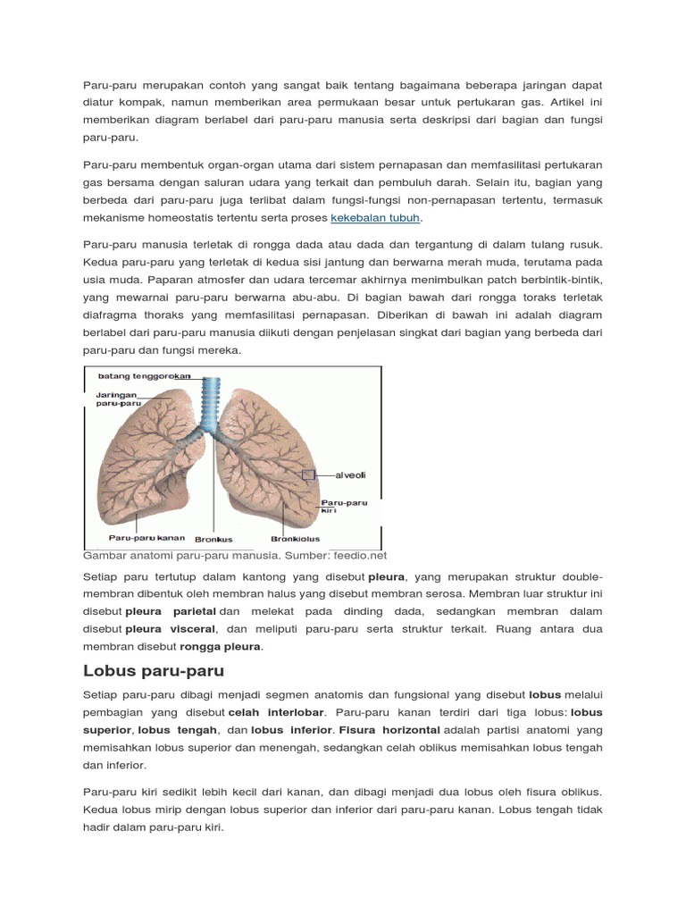 7+ Fungsi Paru Paru. Organ ini, juga memiliki fungsi lain yang tidak kalah bermanfaatnya untuk kesehatan tubuh. Kondisi ini perlu diwaspadai karena bisa membahayakan pernapasan.