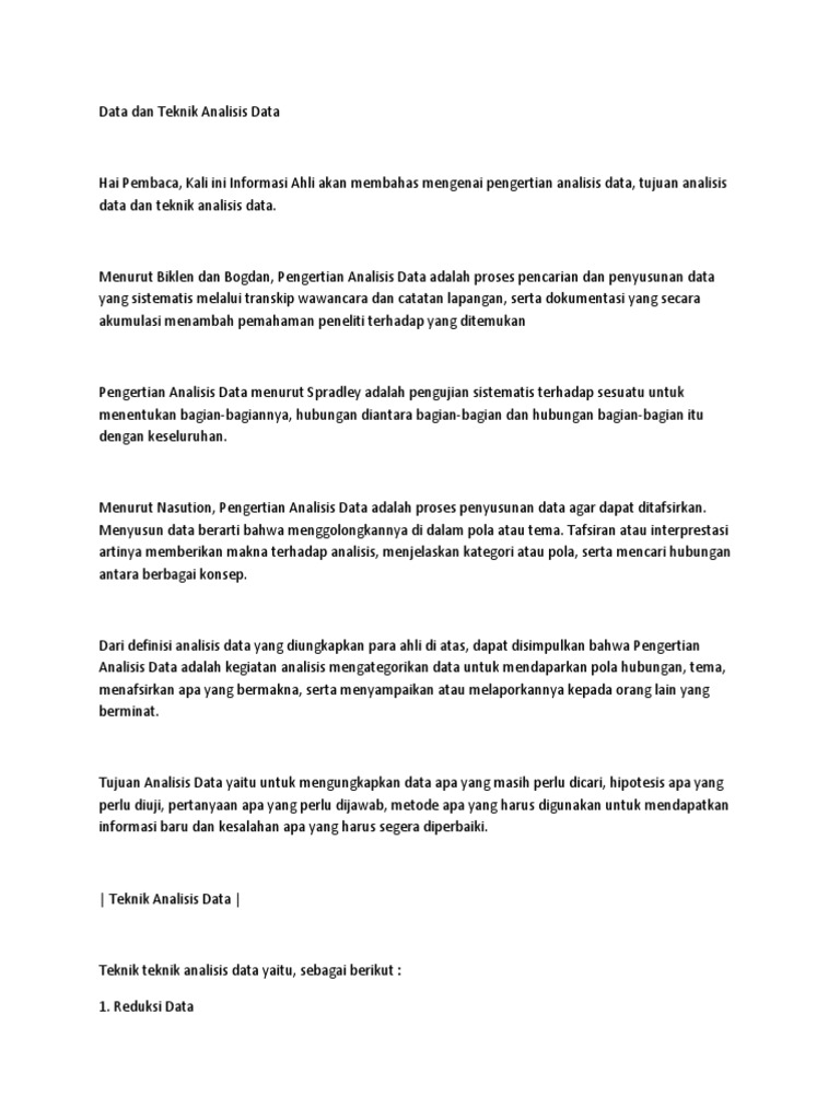 Pengertian statistik menurut para ahli. Pengertian jurnalistik online menurut para ahli. Kata analisis atau analisa berasal dari bahasa yunani kuno, yaitu analusis yang artinya melepaskan. Bernhardsen (2002) pengertian sig menurut bernhardsen adalah sistem komputer yang difunakan untuk memanipulasi data geografi.