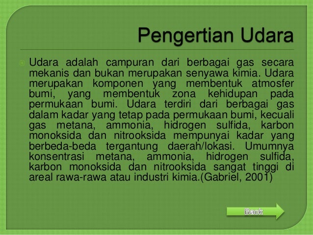 Pengertian pencemaran udara adalah kehadiran satu atau lebih substansi fisik, kimia atau biologi di atmosfer dalam jumlah yang dapat membahayakan kesehatan manusia, hewan dan tumbuhan. Pengertian udara merupakan suatu campuran gas yang terdapat di permukaan bumi serta yang mengelilingi bumi. Kelembapan mutlak (absolut) yaitu bilangan yang menunjukkan jumlah uap. Pengertian tekanan udara, rumus dan contoh soal tekanan udara artikel kali ini akan hadir dengan pembahasan mengenai penjelasan tentang tekanan udara serta.