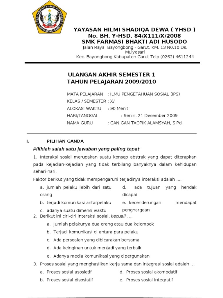 Berikut bospedia memberikan soal uas ips kelas 9 smp/mts. Sebutkan hasil interaksi sosial yang bersifat negatif! Interaksi sosial atau proses sosial dapat bersifat positif tetapi juga bisa bersifat negatir. Soal dan kunci pat matematika ips kelas x sma.