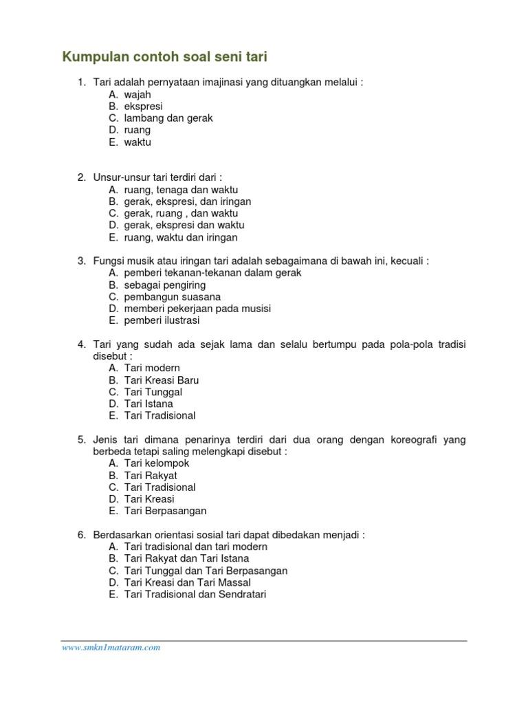Soal Seni Budaya Kelas 6. Makalah materi soal seni budaya kelas 6 sd/mi diterangkan mulai dari sd, smp, atau sma , mts, ma dan smk lengkap dengan jawabannya serta pembahasannya. @sdm2gkb facebook materi pedagogik prota, promes, rpp, dan butir soal.