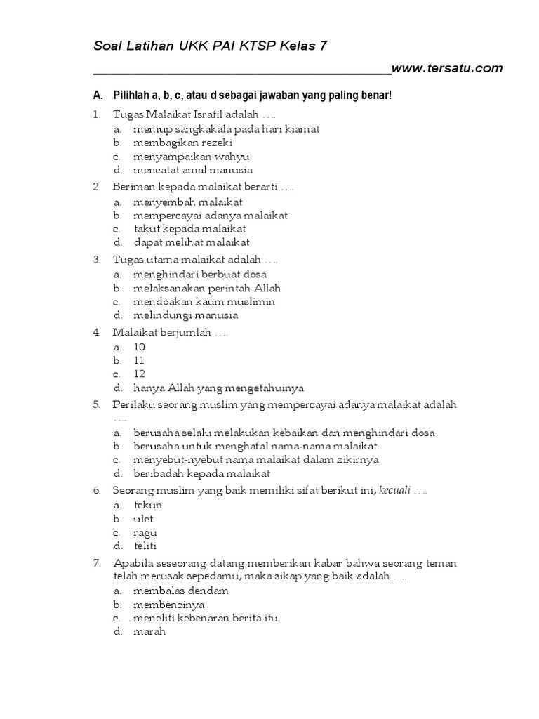 Soal sudut kelas 7deskripsi lengkap. Jadwal pelaksanaan dari ujian tersebut disamakan dengan ujian akhir semester 1. Kak hinda harap, kumpulan bank soal ini dapat membantu dan mengasah kemampuan. Demikian pembahasan materi kita kali ini mengenai soal pendidikan agama islam (pai) kelas 7.