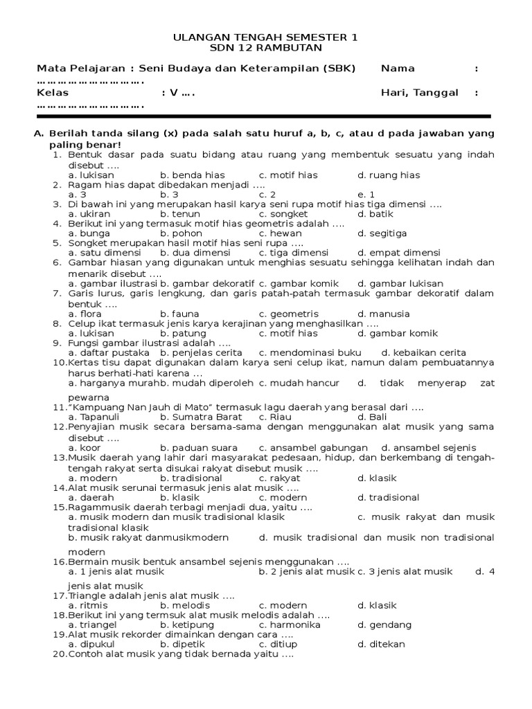 Soal Seni Budaya Kelas 5. Soal seni budaya kelas 5. By guru sekolahposted on 07/05/2020.