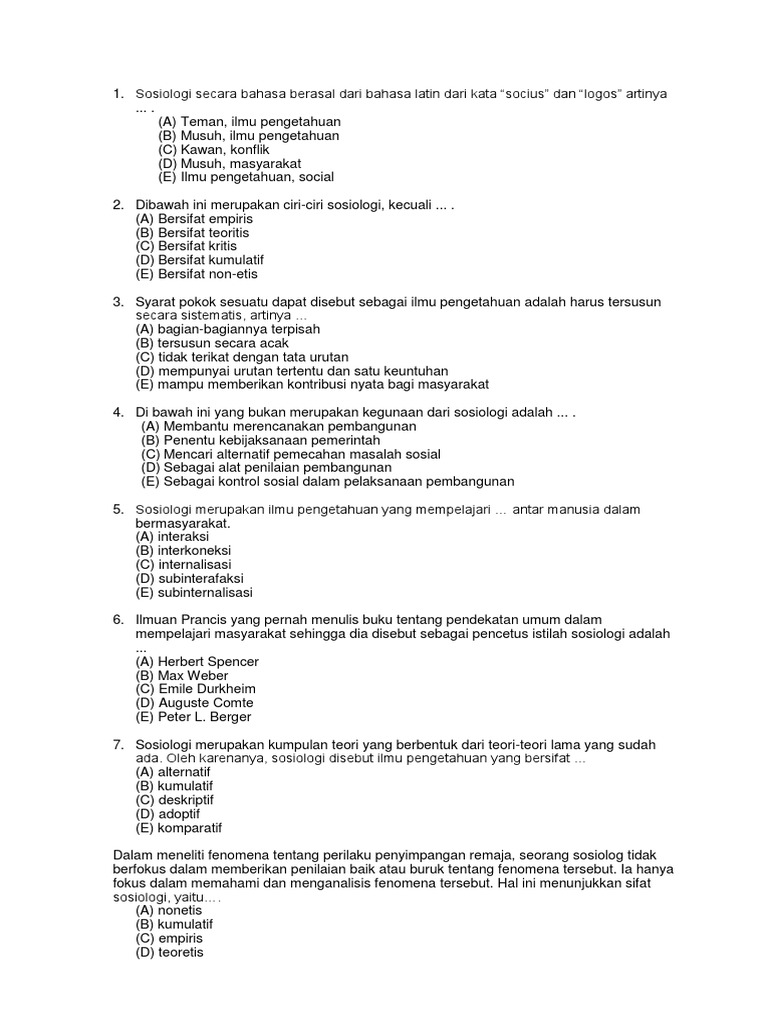 Soal Sosiologi Kelas 10. Socius artinya teman atau kawan dapat juga diartikan adanya perbedaan di setiap definisinya menandakan betapa luasnya objek kajian sosiologi. Dengan adanya edutore, buku soal sosiologi sma kelas 10 yang selama ini hanya dapat diakses secara fisik, kini dapat diakses juga dengan web dan aplikasi pilih paket:
