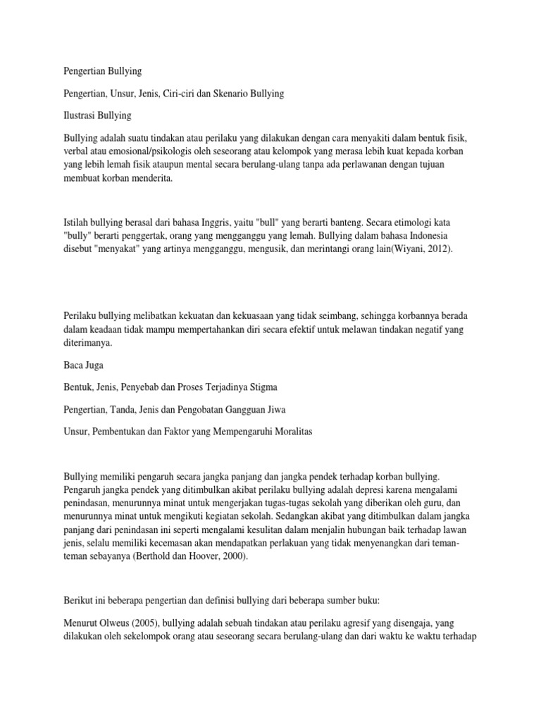 Bullying merupakan penggunaan kekerasan, ancaman atau paksaan untuk menyalah gunakan atau mengintimidasi orang lain. Pengertian, jenis, dampak positif, negatif. Perilaku yang satu ini bisa menimbulkan trauma mendalam bagi korban bullying. Pdf | bullying adalah tindakan penggunaan kekuasaan untuk menyakiti seseorang atau bullying.