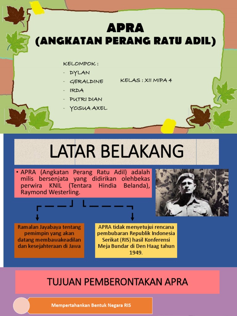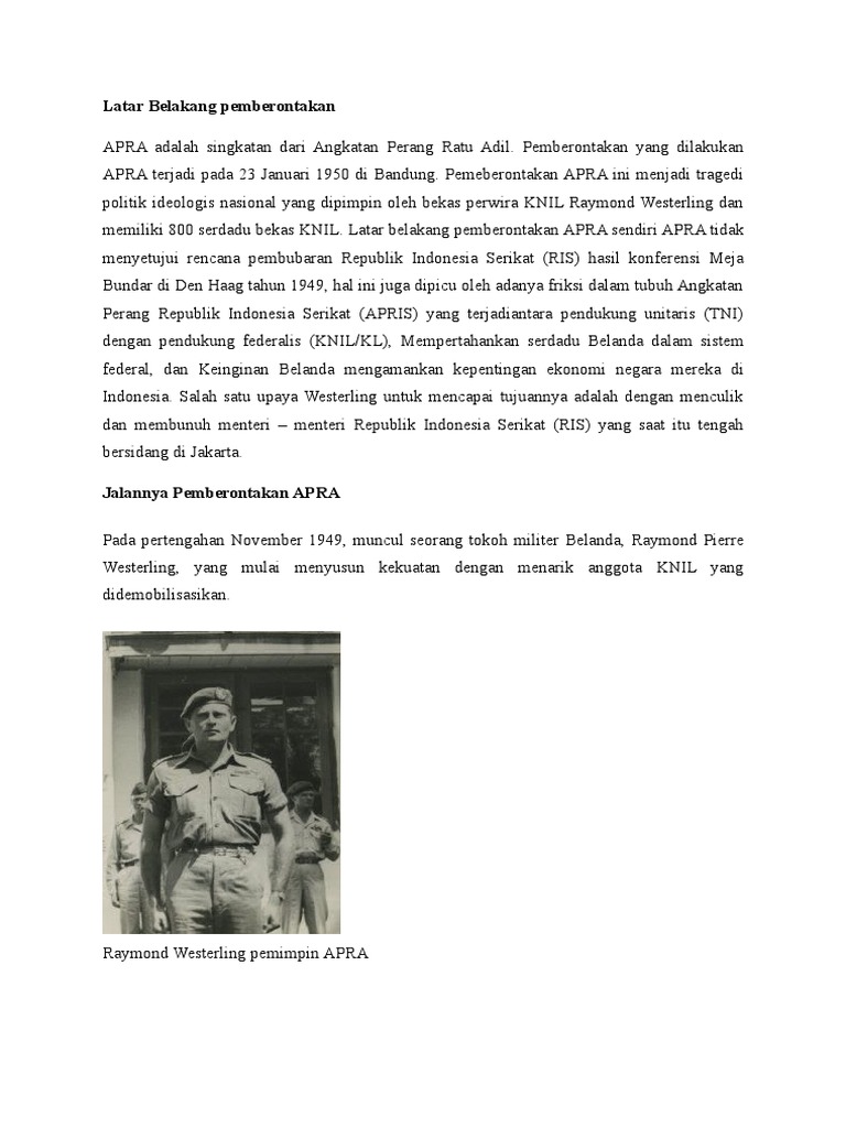 Latar Belakang Apra. Dengan berdasarkan latar belakang dari adanya pemberontakan yang dilakukan oleh apra (angkatan perang ratu adil) yang. Apra singkatan dari angkatan perang ratu adil.