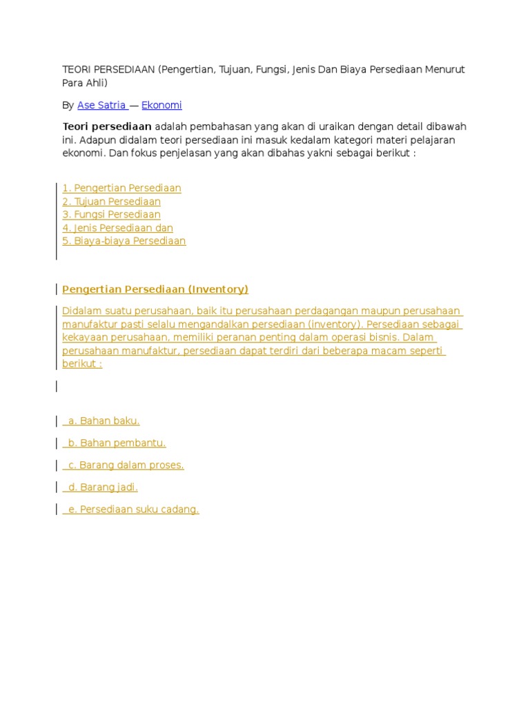 Seni adalah sesuatu yang memiliki unsur ideas, activities, dan artifact. Harold koontz & o' donnel. Pengertian seni menurut ensiklopedi indonesia. Menurut nasution dan prasetyawan (2008), persediaan merupakan idle resources atau sumber daya menganggur yang menunggu proses lebih.