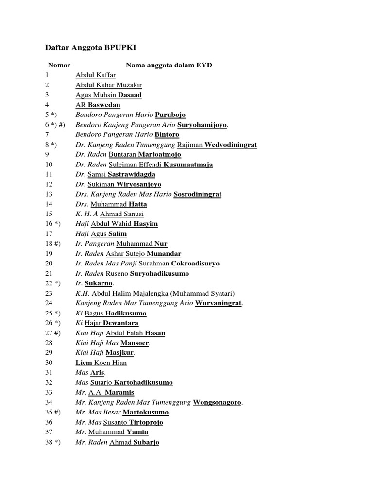 Di luar anggota bpupki, dewan administrasi bpupki (semacam sekretariat) dibentuk dengan 60 anggota dengan raden pandji soeroso sebagai ketua dan bapak abdoel gafar pringgodigdo dan. Nah, setelah ini akan disebutkan kok semua anggota bpupki yang terlihat dalam sidang i dan sidang ii. Namun upacara peresmiannya dilaksanakan pada. Masa persidangan pertama bpupki (29 mei1 juni 1945) masa persidangan pertama bpupki dimulai pada tanggal 29 mei 1945 sampai dengan 1 juni 1945 untuk.