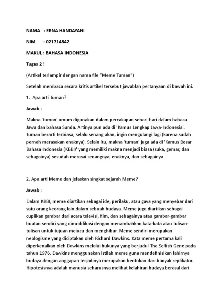 Apa Arti Tuman Dalam Bahasa Indonesia. Menurut kamus besar bahasa indonesia versi daring, na'am atau naam adalah kata serapan dari bahasa arab apa yang dimaksud dengan na'am ya akhi? Lika liku kehidupan (kesenangan kesusahan).