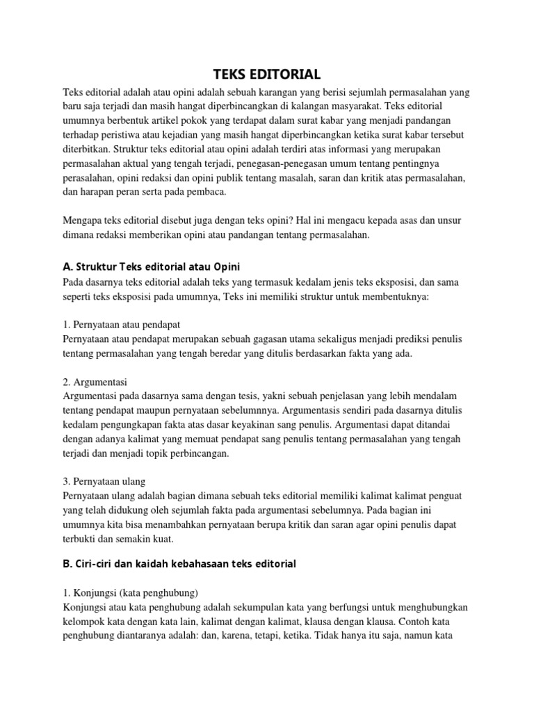 Apa Yang Dimaksud Dengan Opini Penulis Dalam Teks Editorial. Teks editorial ini dianggap sebagai pandangan resmi dari media tersebut terhadap isu yang dibicarakan. Biasa dimuat dalam rubrik khusus pada koran atau majalah, tujuan apa sebenarnya yang dimaksud dengan teks editorial?