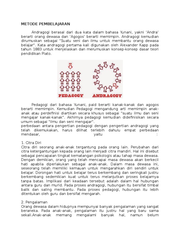 Pedagogy Andragogy Dan Heutagogy from connectiv.files.wordpress.com Istilah ini merujuk pada strategi pembelajaran atau gaya pembelajaran. Menurut knowles, sebelum wujudnya andragogi, pedagogi sudah muncul. Namun gagal fasih menjelaskan pada orang lain.