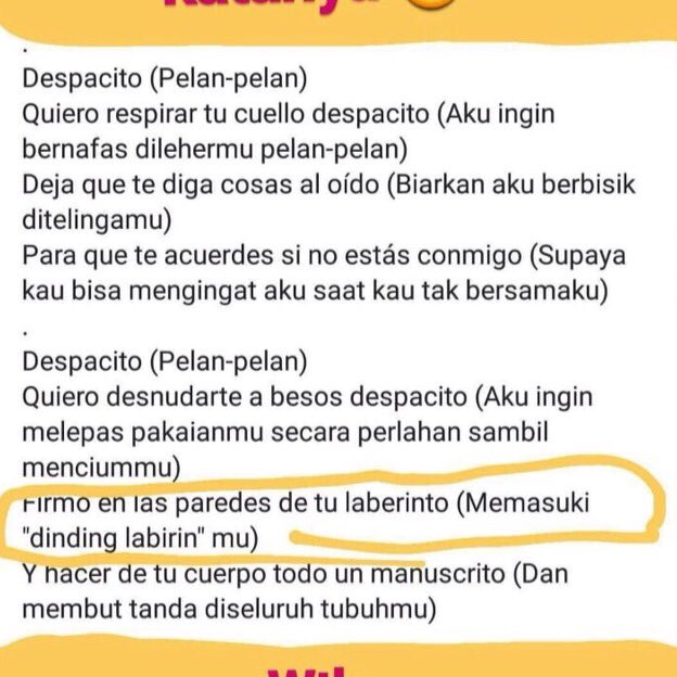 Arti Kata Despacito. Mungkin kamu pernah lihat kata up di dalam komentar grup jual beli facebook, atau di chat whatsapp. Lagu ini dinyanyikan oleh penyanyi terkenal asal puerto rico yakni luis fonsi.