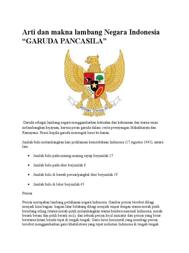 Banyaknya Bulu Pada Leher Burung Garuda. Hitunglah banyaknya bulu pada ekor, sayap, dan leher burung garuda! Apa makna dari lambang tersebut?