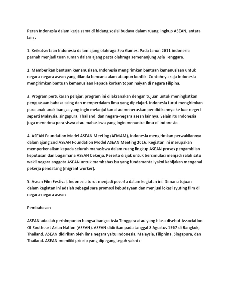 Peran indonesia di bidang sosial dan budaya.