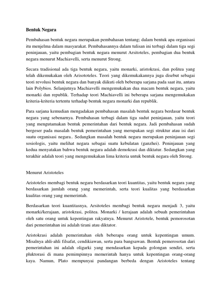 Bentuk Negara Docx 1 Bentuk Negara Istilah Bentuk Negara Berasal Dari Bahasa Belanda Yaitu U201dstaatvormen U201d Menurut Para Ahli Ilmu Negara Istilah Course Hero from www.coursehero.com Bentuk negara adalah merupakan batas antara peninjauan secara sosiologis dan peninjauan secara yuridis mengenai negara. Negara indonesia terdiri dari banyak kepulauan, suku, adat, dan keyakinan. Meskipun ahli tata negara punya pandangan berbeda mengenai bentuk negara, tapi selama ini dua bentuk negara yang umum dijumpai dan berkembang adalah negara kesatuan dan negara serikat alias federasi.