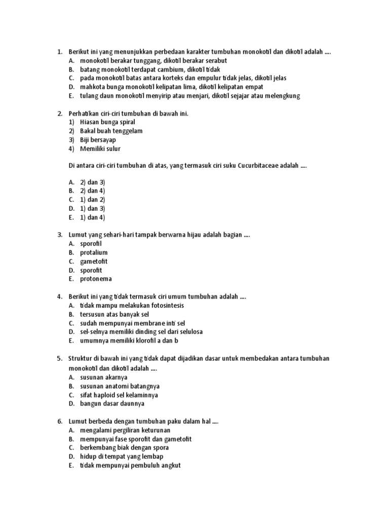 Ciri Ciri Tumbuhan Monokotil Ditunjukkan Oleh Nomor. Pembuluh xilem terdapat di bagian tengah, sedangkan pembuluh floem terdapat di bagian luar xylem yang dibatasi oleh kambium. Ciri pada tumbuhan dikotil berdasarkan ciri fisik pembeda yang dimiliki adalah :