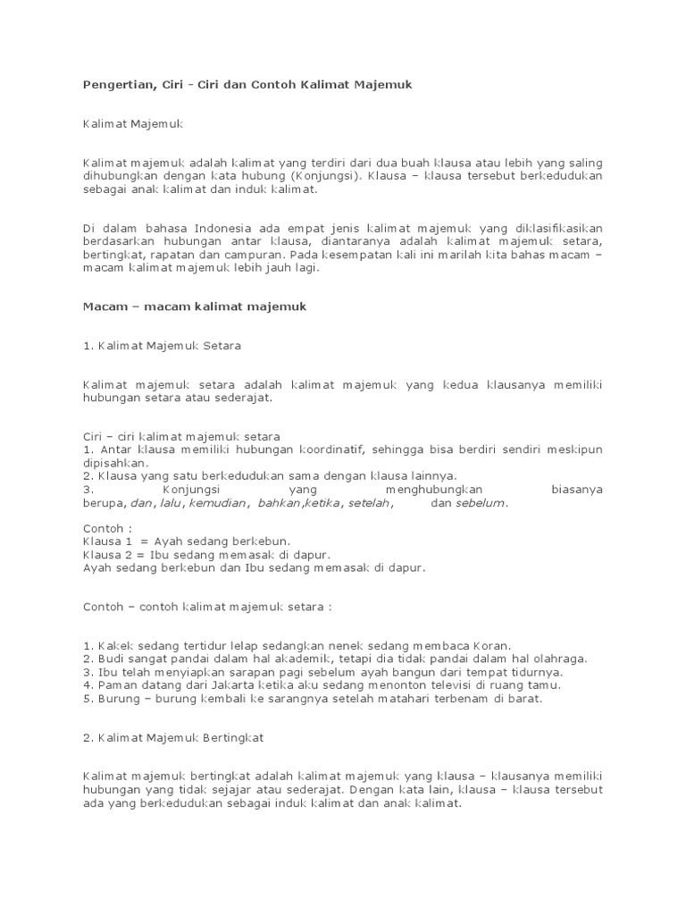 Ciri Ciri Kalimat Majemuk Bertingkat. Salah satu pola menduduki fungsi lebih tinggi dari pola lain. Hmm, mungkin langsung kita bahas saja apa itu kalimat majemuk.