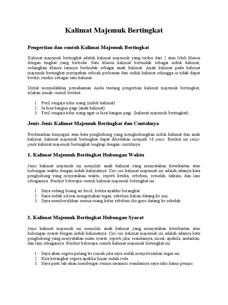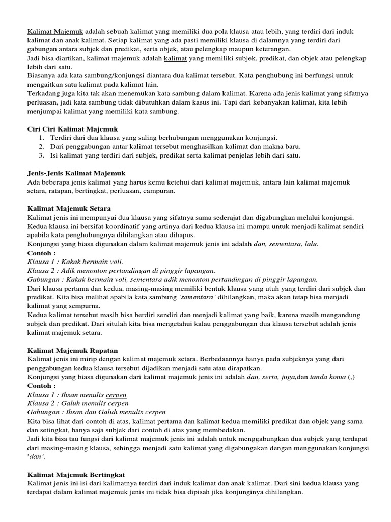 Kalimat Majemuk Bertingkat Pengertian Ciri Jenis D from www.seputarpengetahuan.co.id Kalimat majemuk adalah kalimat yang disusun dari dua atau lebih klausa yang terhubung dengan kata penghubung atau kata sambung. Demikianlah artikel dari dunia.pendidikan.co.id megnenai contoh kalimat majemuk : Perluasan menghasilkan pola kalimat baru.
