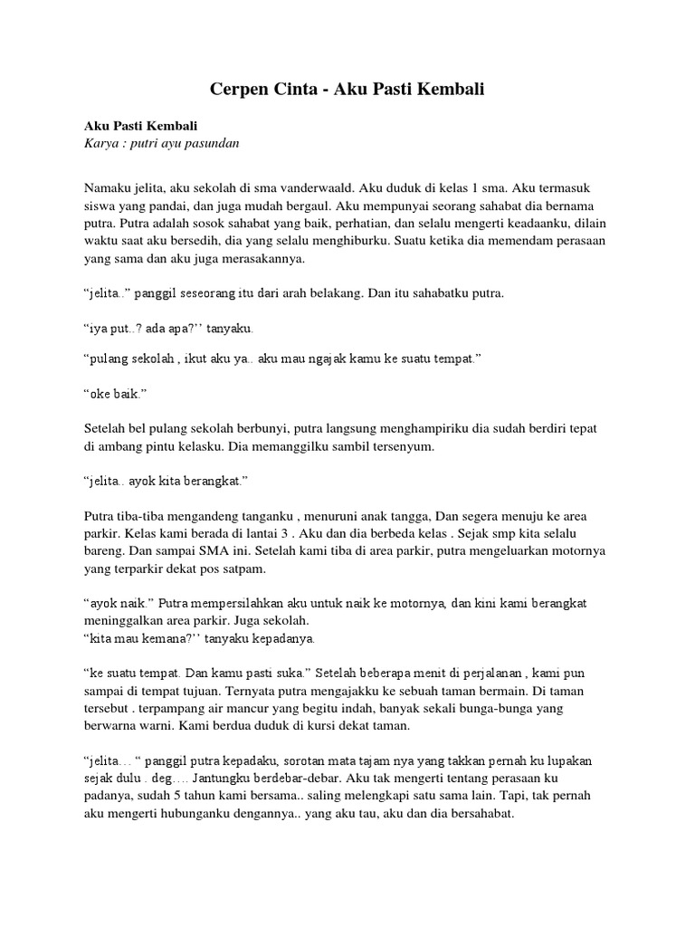 Cerpen Cinta. Yuk ngobrol segala hal tentang cinta, manis, pahit, asem, getir, galau, silahkan tumpahkan di sini.this fanspage belongs to. Cinta yang menurut dia cinta itu sangat indah dan.
