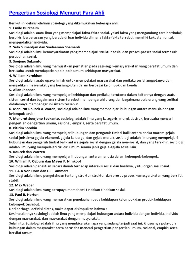 Pengertian Sosiologi Menurut Para Ahli E Jurnal from 1.bp.blogspot.com Definisi lain mengenai pengertian sosiologi adalah ilmu yang mempelajari tentang perilaku, sifat dan perkembangan di dalam masyarakat. Pengertian sosiologi hukum menurut para ahli Pengertian sosiologi dapat diartikan secara etimologis (bahasa), sosiologi berasal dari kata socius dan logos.