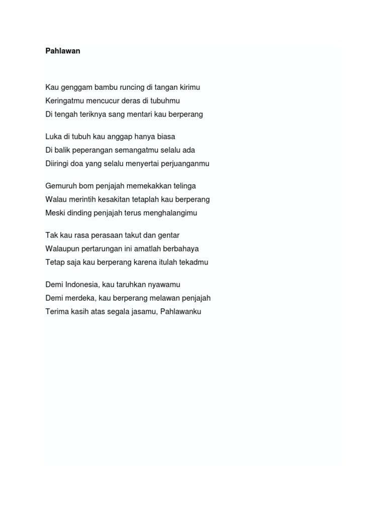 Contoh puisi tentang pahalwan akan hadir untuk sobat semuanya.