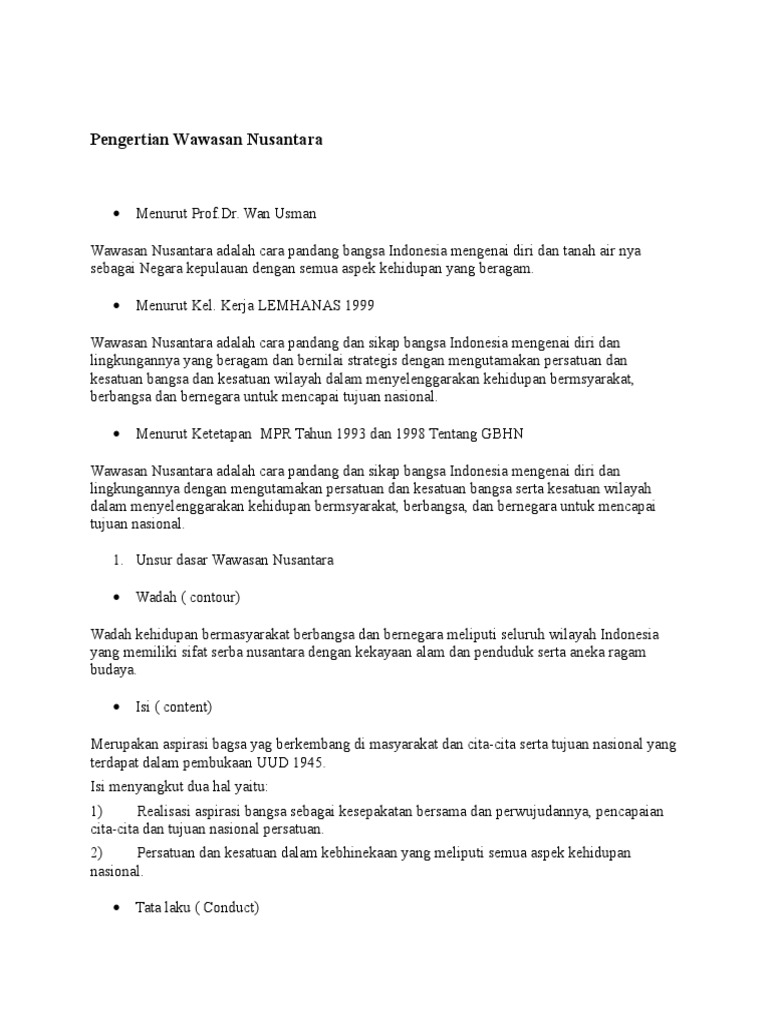 Wawasan Nusantara Sebagai Geopolitik Ind 2 from data03.123dok.com Pengertian wawasan nusantara adalah suatu sikap atau cara pandang bangsa indonesia terhadap diri sendiri dan bentuk. Wawasan nusantara sebagai wawasan nasional indonesia pada hakikatnyamerupakan perwujudan dari kepulauan nusantara sebagai satu kesatuan (hankam). Pelajar indonesia harus diperkenalkan mengenai wawasan nusantara.