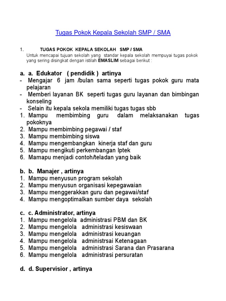 Tugas pokok tersebut diarahkan untuk mengawasi kinerja guru dalam pembelajaran dan kinerja kepala sekolah dalam mengelola pendidikan. Yuk langsung simak aja, ulasan lengkapnya pada artikel berikut ini! Tugas manajerial tugas kepala sekolah dalam bidang manajerial berkaitan dengan. Mungkin itulah kiranya pembahasan mengenai tugas dan fungsi kepala sekolah ( emaslim ) pada kesempatan kali ini, semoga bisa membantu dan memberikan penjelasan mengenai tugas pokok dan fungsi kepela sekolah.